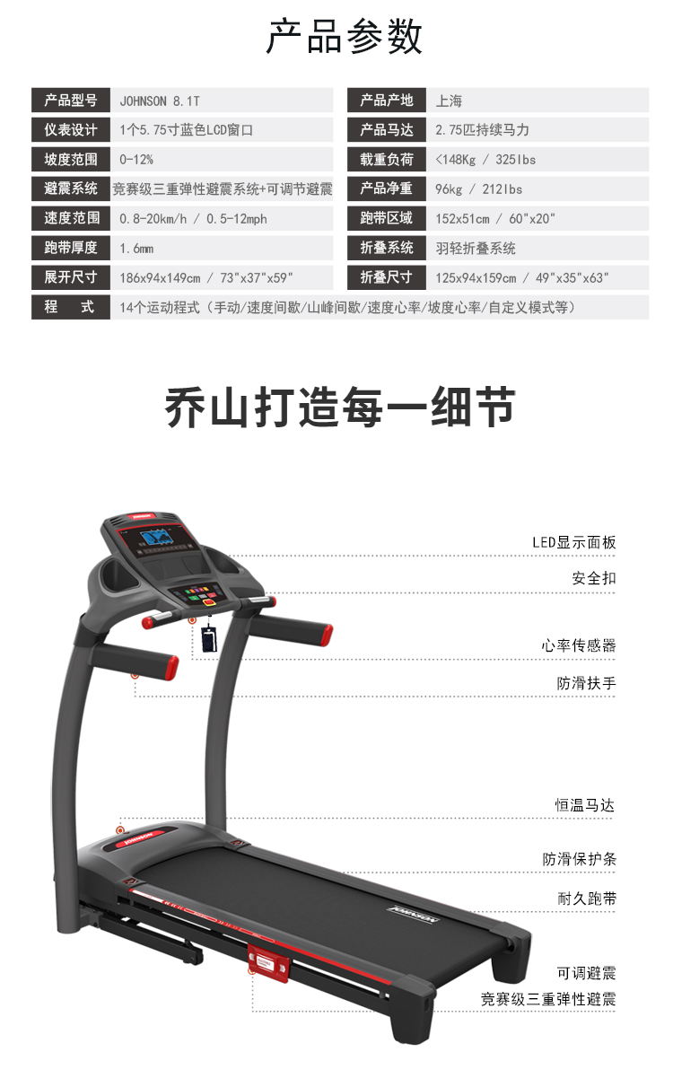 乔山JOHNSON91香蕉污在线观看8.1T PLUS升级款 高端折叠家用走步机
