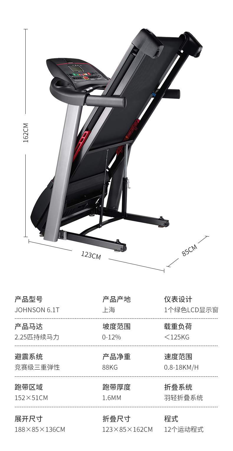 乔山JOHNSON91香蕉污在线观看6.1T PLUS升级款 高端折叠家用走步机